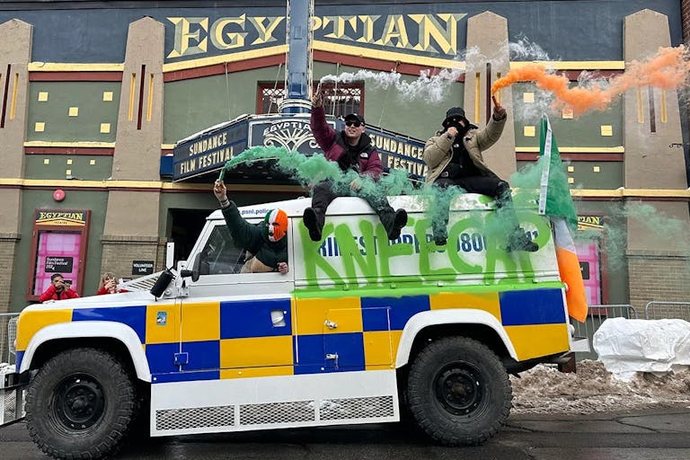 We caught up with Peppiatt – a former Daily Star journalist and co-director of the satirical doc One Rogue Reporter (2014) – on a Zoom after Kneecap’s world premiere at Sundance Film Festival. Peppiatt, originally from Staines, Berkshire, has parents in Canada and is the owner of British, Irish and Canadian passports. “I’ve always found the idea of nationalism to be quite a weird one, and that’s something that plays out in the film a little bit,” he says.